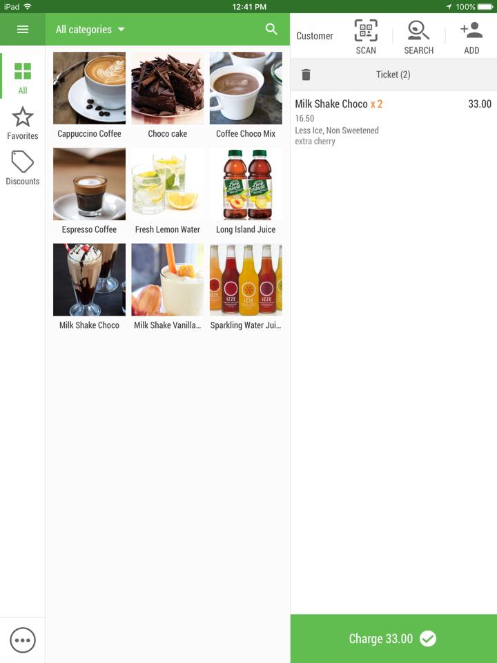 POS app provides you with the possibility of connecting sale records with customers. It allows you to send receipts to customers via e-mail. If you have already set up loyalty program, you can give bonus points to registered customers for every purchase, to be redeemed for discounts.