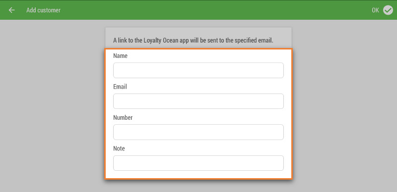 Your customer will receive an email with the link, to the Loyalty Ocean app download.